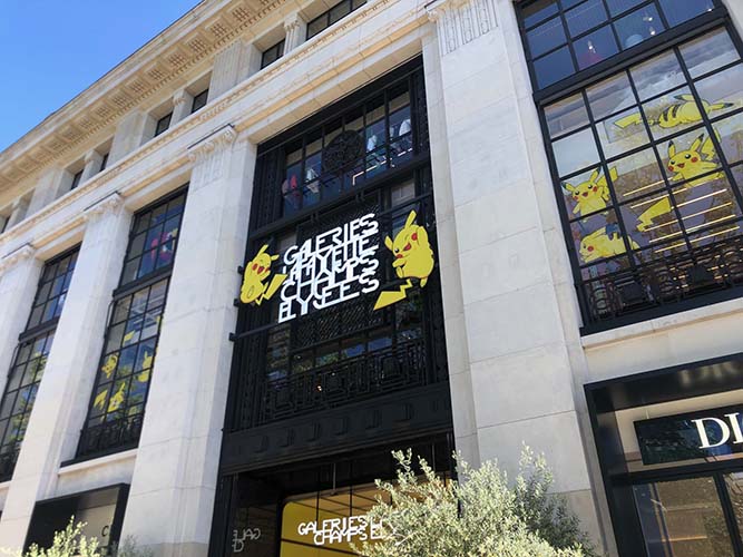 シャンゼリゼ大通り、荘厳なつくりの建物の壁に、楽しそうに駆け回るポップなピカチュウが登場した。
